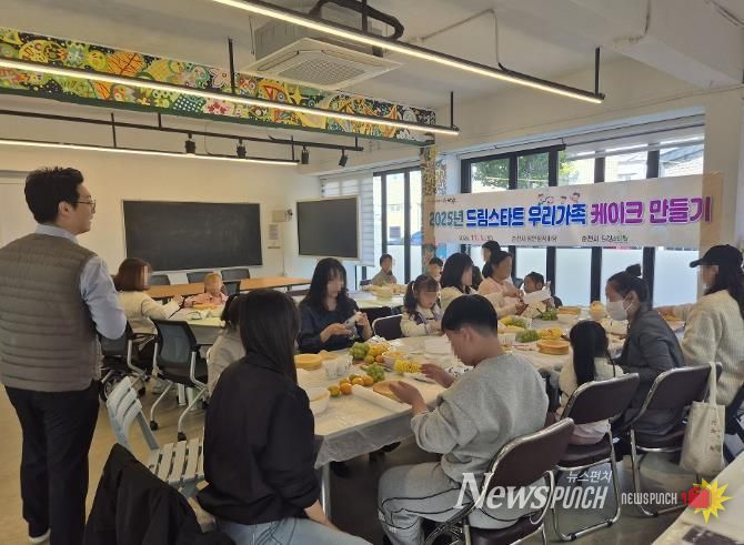 뉴스펀치 김길룡 기자 | 순천시는 지난 1일, 드림스타트 아동과 가족이 함께 참여한 “우리가족 케이크 만들기” 체험 프로그램을 장안창작마당에서 운영했다고 밝혔다.