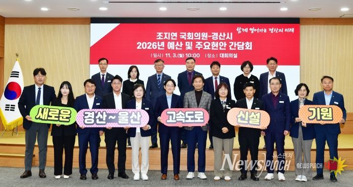 뉴스펀치 김길룡 기자 | 경산시는 3일 시청 대회의실에서 조지연 국회의원과 간담회를 개최하고, 2026년 정부 예산 확보 및 주요 시정 현안 사업에 대한 긴밀한 협력 방안을 논의했다.