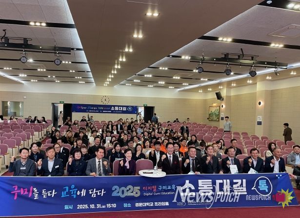뉴스펀치 김길룡 기자 | 경상북도구미교육지원청은 10월 31일 금요일 경운대학교 프라임홀에서 도의회 의원, 경상북도교육청연수원장, 경상북도교육청구미도서관장, 관내 유·초·중·고등학교 교(원)장 대표, 학교운영위원장협의회, 학부모회협의회, 녹색어머니회, 구미학생안전자원봉사자회, 학부모자원봉사자회, 학생선도단, 학원연합회, 주민감사관, 교육계 원로, 교육발전특구 관계자 등 구미 교육가족 300여 명을 초청하여 ‘2025 교육감과 함께하는 구미교육 소통대길 톡’을 개최했다.