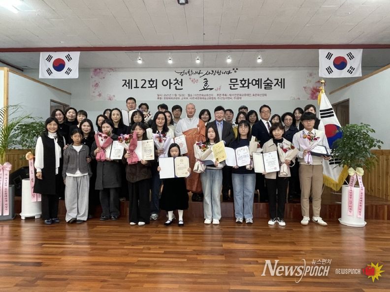 뉴스펀치 조은별 기자 | 재단법인 아천문화교류재단(ACEF)이 주최-주관한 '제12회 아천효문화예술제’가 11월 1일 오후3시 아천문화교류센터에서 시상식이 개최됐다. 이날 행사에는 부모사랑 나라사랑의 올바른 가치관을 심어주기 위해 문화예술 부문의 우수한 인재들을 발굴 시상하고 올해로 12회를 맞았다.