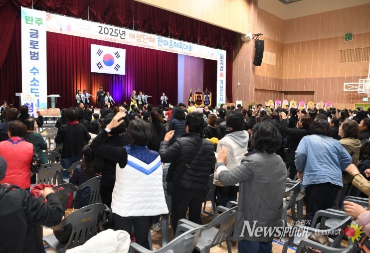 뉴스펀치 정홍균 기자 | 완주군여성단체협의회(회장 채미화)가 4일 완주군문화체육센터에서 ‘2025 완주군 여성단체 한마음 체육대회를 열었다.