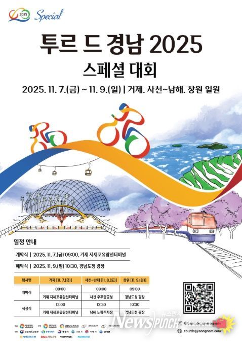 뉴스펀치 김길룡 기자 | 경상남도는 7일부터 9일까지 3일간, 경남 남해안 4개 시군을 배경으로 ‘투르 드 경남 2025(스페셜대회)’가 개최된다고 밝혔다.