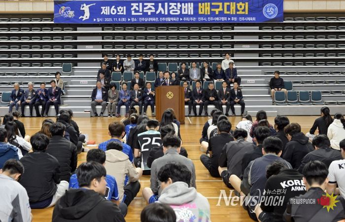 뉴스펀치 김길룡 기자 | ‘제6회 진주시장배 배구대회’가 지난 8일 초전동 진주실내체육관과 상평동 진주생활체육관에서 성황리에 개최됐다.