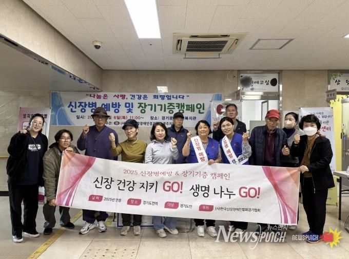 뉴스펀치 김길룡 기자 | 사단법인 한국신장장애인협회 경기협회 광주지부는 지난 6일 광주시노인복지관에서 ‘나눔은 사랑, 건강은 희망입니다’라는 주제로 신장병 예방 및 장기기증 캠페인을 성황리에 개최했다.