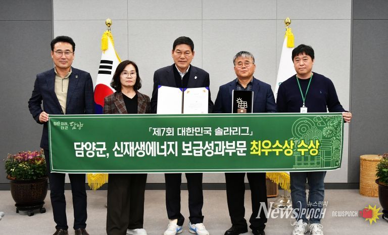 뉴스펀치 탁상훈 기자 | 담양군이 신재생에너지 보급에 앞장선 공로를 인정받아 ‘제7회 대한민국 솔라리그(K-Solar League)’에서 최우수상을 수상했다.