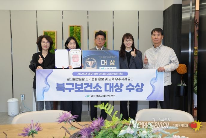 뉴스펀치 조평훈 기자 | 대구북구보건소가 대구·경북 권역심뇌혈관질환센터가 주관한 '2025년 심뇌혈관질환 조기증상 홍보 및 교육 우수사례 공모전'에서 대상(대구·경북 1위)을 수상했다.