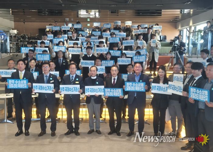 뉴스펀치 김길룡 기자 | 전북특별자치도와 완주군은 11일 우석대학교 본관 23층(W-SKY 23)에서 ‘완주군 수소산업 발전전략 포럼’을 열고 국제수소거래소 설립과 수소상용모빌리티 특화단지 조성 등 수소산업 전주기 생태계 구축 방향을 논의했다.