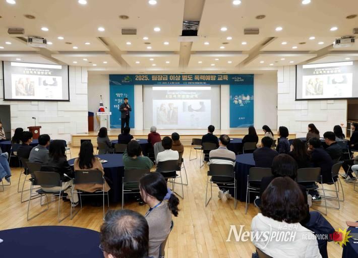 뉴스펀치 김완규 기자 | 서울 은평구는 지난 4일 팀장급 이상 간부 공무원 80여 명을 대상으로 ‘2025년 팀장급 이상 폭력예방교육’을 실시했다고 밝혔다.
