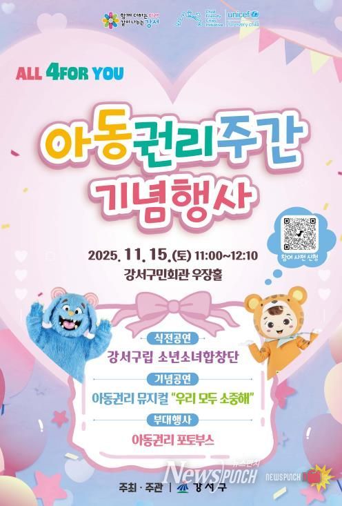 뉴스펀치 김완규 기자 | 서울 강서구가 오는 15일부터 21일까지 일주일간 '2025년 아동권리주간'을 운영한다.