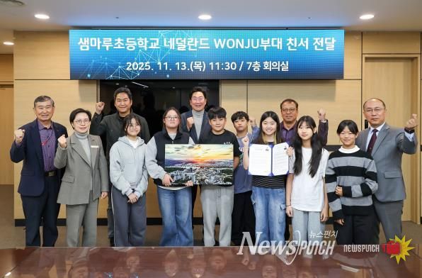 뉴스펀치 김길룡 기자 | 원주시는 샘마루초등학교 학생대표단을 통해 네덜란드 스하르베르헌(Schaarsbergen)에 위치한 ‘반 휘츠 연대(Van Heutsz Regiment)’ 예하 ‘WONJU’ 중대에 6·25전쟁 참전 감사 서한을 전달한다.