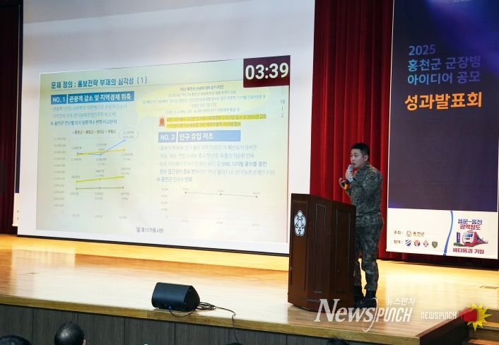 뉴스펀치 김길룡 기자 | 홍천군은 11월 13일 홍천문화센터에서 ‘2025년 홍천군 군(軍)장병 아이디어 공모전’ 최종 성과발표회를 개최했다.