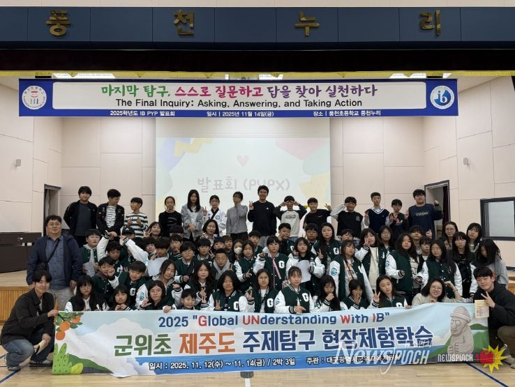 뉴스펀치 조평훈 기자 | 대구군위교육지원청은 11월 12일부터 14일까지 2박 3일간 제주도 일원에서 군위초등학교 5학년 학생 47명이 참여하는 ‘2025 Global UNderstanding With IB 주제탐구 현장체험학습’을 운영했다고 밝혔다.