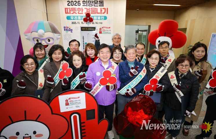 뉴스펀치 김완규 기자 | 서울 동대문구는 14일 구청 1층 로비에서 ‘사랑의 온도탑’ 제막식을 열고, 서울 사회복지공동모금회와 함께하는 ‘2026 희망온돌 따뜻한 겨울나기, 우리동네 나눔캠페인’을 시작했다고 밝혔다.