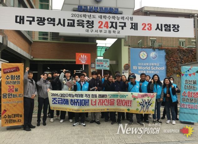 뉴스펀치 조평훈 기자 | 대구 서구 청소년지도협의회(회장 황만태)는 지난 12일, 서부고등학교 정문에서 학생들의 수능 예비 소집일 시간에 맞춰 수험생 응원 및 선도·보호 합동 캠페인을 실시했다.