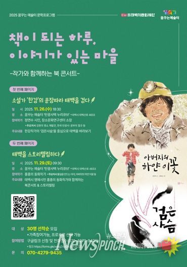 뉴스펀치 김길룡 기자 | (재)태백시문화재단은 오는 11월 26일과 29일, 꿈꾸는 예술터 ‘탄광사택 누리큐브’에서 시민 대상 문학 프로그램 ‘2025 꿈꾸는 예술터 문학프로그램 – 책이 되는 하루, 이야기가 되는 마을’을 운영하며 참여자를 모집한다.