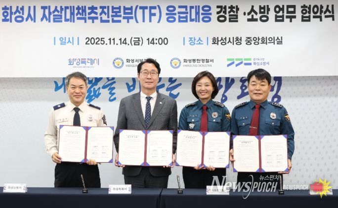 뉴스펀치 김길룡 기자 | 화성특례시는 지난 11월 14일 오후 2시, 화성시청 중앙회의실에서 ‘자살대책추진본부(TF) 응급대응을 위한 경찰·소방 업무협약’을 체결했다고 밝혔다.