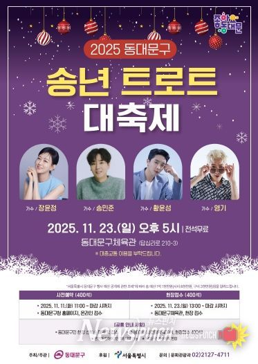뉴스펀치 김완규 기자 | 서울 동대문구는 오는 23일 오후 5시 동대문구체육관에서 ‘2025 동대문구 송년 트로트 대축제’를 개최한다고 밝혔다. 이번 행사는 지난해에 이어 올해로 2회째 열리는 연말 공연으로, 한 해를 마무리하며 주민들에게 흥과 감동을 전하고자 마련됐다.