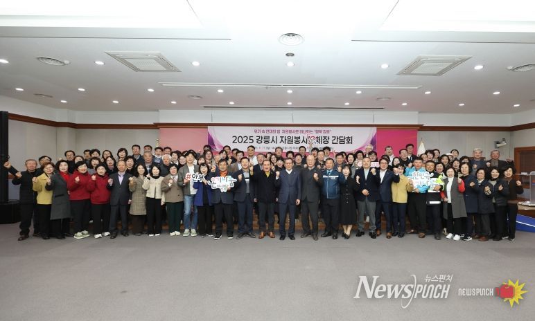 뉴스펀치 김길룡 기자 | 강릉시와 (사)강릉자원봉사센터(이사장 최길영)는 17일 시청 2층 대회의실에서 60여 개 자원봉사단체장 및 임원, 김홍규 시장, 조대영 강릉시의회 부의장을 비롯한 130여 명이 참석한 가운데 ‘2025 강릉시 자원봉사단체장 간담회’를 개최했다.