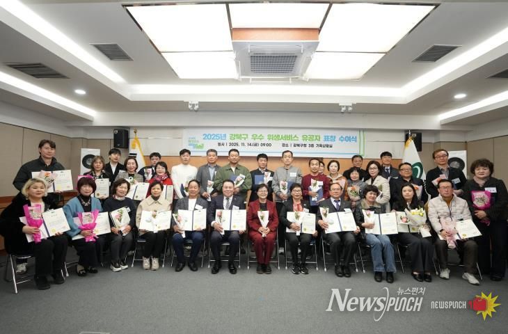 뉴스펀치 김완규 기자 | 서울 강북구는 지난 14일 구청 기획상황실에서 ‘2025년 위생 서비스 향상 유공자 표창 수여식’을 열고 식품위생 및 공중위생 분야 발전에 기여한 우수 영업자와 유관기관 종사자 35명에게 표창을 수여했다.