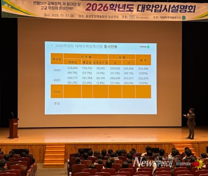 뉴스펀치 김길룡 기자 | 횡성군의 위탁을 받아 횡성인재육성관을 운영하고 있는 (재)횡성인재육성장학회에서 지난 17일 횡성문화예술회관에서‘2026학년도 대학입시설명회’를 개최했다.