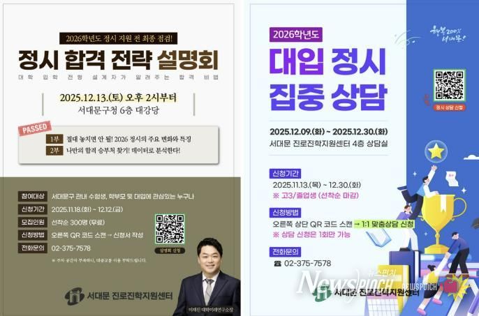 뉴스펀치 김완규 기자 | 서대문구가 2026학년도 대입 정시 지원을 준비하는 관내 수험생과 학부모를 위해 ‘정시 합격 전략 설명회’를 개최한다.