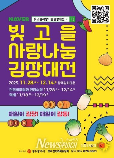뉴스펀치 김길룡 기자 | 광주광역시는 오는 11월28일부터 12월14일까지 광주김치타운에서 ‘2025년 빛고을 사랑나눔 김장대전’을 연다.