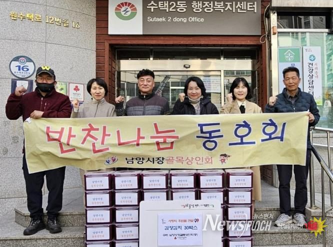 뉴스펀치 김길룡 기자 | 구리시 수택2동 행정복지센터는 지난 17일 구리시 남양시장 골목상인회로부터 관내 취약계층을 위한 김장 김치를 후원받았다고 밝혔다. 이번 나눔은 연말을 맞아 어려운 이웃들에게 따뜻한 정을 전하고, 전통시장의 나눔 문화를 확산하기 위해 마련됐다.