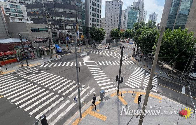뉴스펀치 김완규 기자 | 교차로에서 모든 방향으로 건널 수 있는 ‘대각선횡단보도’ 설치 이후 교통사고 건수가 이전보다 18.4%(377건→ 308건) 감소했다. 또 횡단보도를 건너는 보행자를 충격하는 ‘보행자보호의무위반’ 건수도 50%(34건→ 17건)로 줄어 대각선횡단보도 설치 이후 보행자 안전과 편의가 높아진 것으로 나타났다.