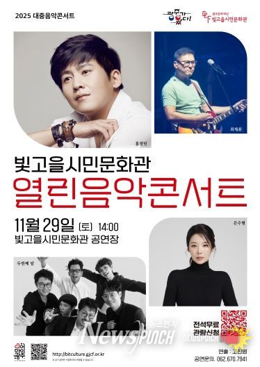 뉴스펀치 조은별 기자 | 광주문화재단은 오는 11월 29일 빛고을시민문화관 공연장에서 ‘2025 대중음악콘서트(2회차)’를 전석 무료로 개최한다고 밝혔다. 이번 공연은 시민 문화복지 실현과 문화 접근성 확대를 위한 열린 음악회로, 지역민 누구나 부담 없이 참여할 수 있는 공공기획 공연이다.