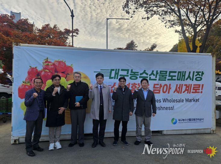 뉴스펀치 조평훈 기자 | 대구농수산물도매시장이 유통하는 우수 농산물이 ‘CA(Controlled Atmosphere, 환경제어) 컨테이너’라는 최첨단 기술을 활용해 세계 시장으로 향하는 수출 시대의 첫발을 내디뎠다.