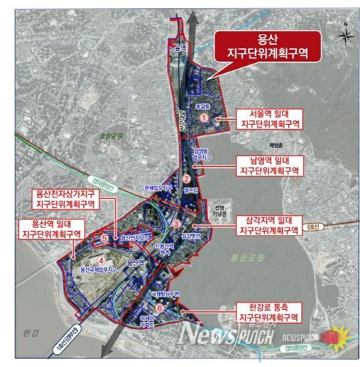 뉴스펀치 김완규 기자 | 서울 용산구는 용산 지구단위계획구역을 기존 1개 구역에서 6개 구역으로 나누는 재정비안이 지난 12일 서울시 도시·건축공동위원회를 통과했다고 밝혔다. 이번 결정은 구가 10여 년간 준비해 온 지구단위계획 재정비의 본격적인 이행을 의미한다.