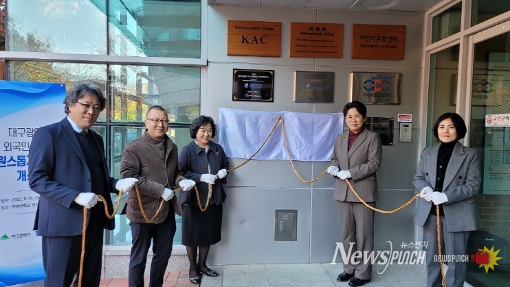 뉴스펀치 김길룡 기자 | 대구광역시는 11월 18일 오후 2시 30분, 계명대학교 동영관에서 ‘대구광역시 외국인 유학생 원스톱지원센터’ 및 ‘거점 한국어센터’ 현판식을 가졌다.