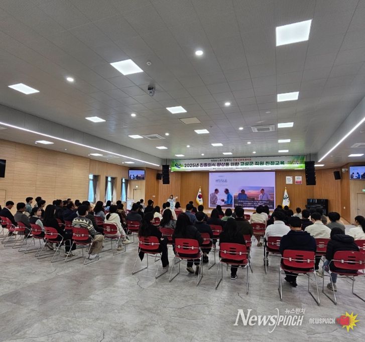 뉴스펀치 김길룡 기자 | 고성군은 11월 18일, 군청 5층 대회의실에서 ‘명화와 노래가 함께하는 친절 인문학 콘서트’라는 주제로 2025년 직원 친절의식 향상을 위한 친절교육을 실시했다.