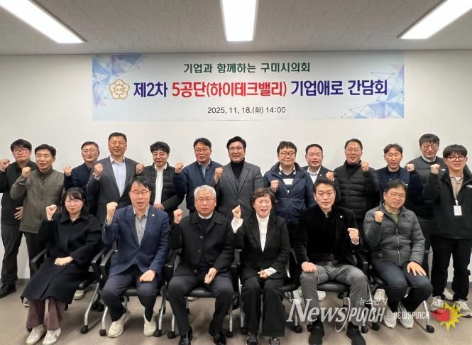 뉴스펀치 김길룡 기자 | 구미시의회는 지난 11월 18일, 5공단 내 입주 기업인 (주)티에스티에서 “제2차 5공단(하이테크밸리) 기업 애로 간담회”를 개최하고, 기업 경영 활동을 저해하는 현안 해결과 향후 지원 방안을 논의했다.
