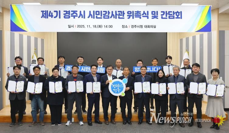 뉴스펀치 김길룡 기자 | 경주시는 18일 시민 참여를 통한 투명하고 신뢰받는 시정 구현을 목표로 ‘제4기 시민감사관 위촉식’을 개최했다.