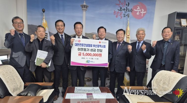 뉴스펀치 김길룡 기자 | 지난17일 대한전문건설협회 부산광역시회(회장 김형겸)는 부산 중구청을 방문해 동절기 대비 관내 저소득층 및 취약계층 지원을 위해 이웃돕기성금 500만원을 전달했다.