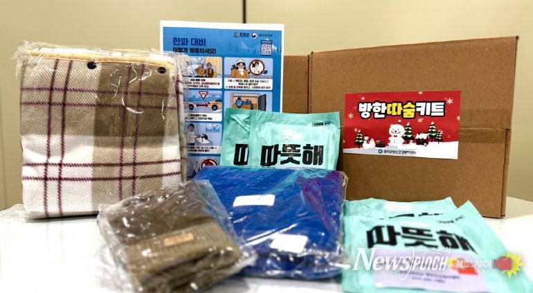 한랭질환 예방 “방한 따숨 키트”는 핫팩, 무릎담요, 장갑, 한파 시 행동요령 안내문 등 한파에 대응할 수 있는 실질적인 물품으로 구성했다.