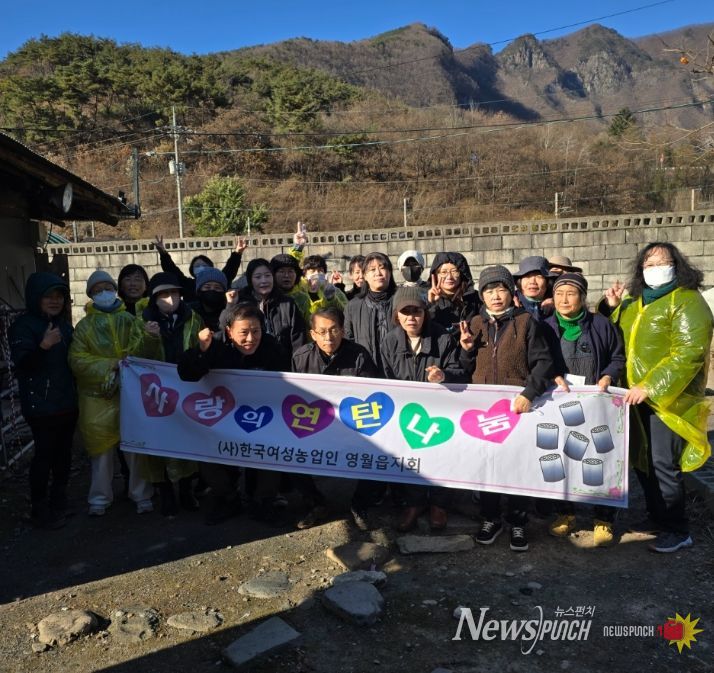 뉴스펀치 김길룡 기자 | 영월읍에서 11월 18일 한국여성농업인 영월읍지회 주최로‘사랑의 연탄 나눔’행사가 열렸다.