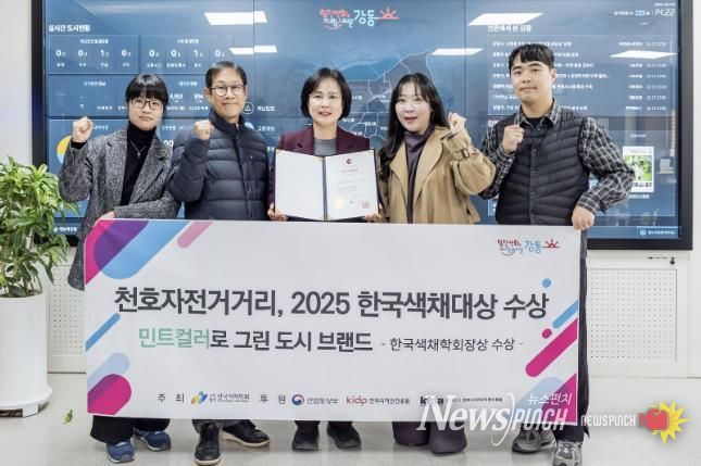 뉴스펀치 김완규 기자 | 서울 강동구는 천호자전거거리 등에 민트색을 입혀, 특화거리의 정체성을 효과적으로 강화한 점을 인정받아, 최근 '2025 한국색채대상'의 가치(블루) 부문에서 본상을 수상했다.