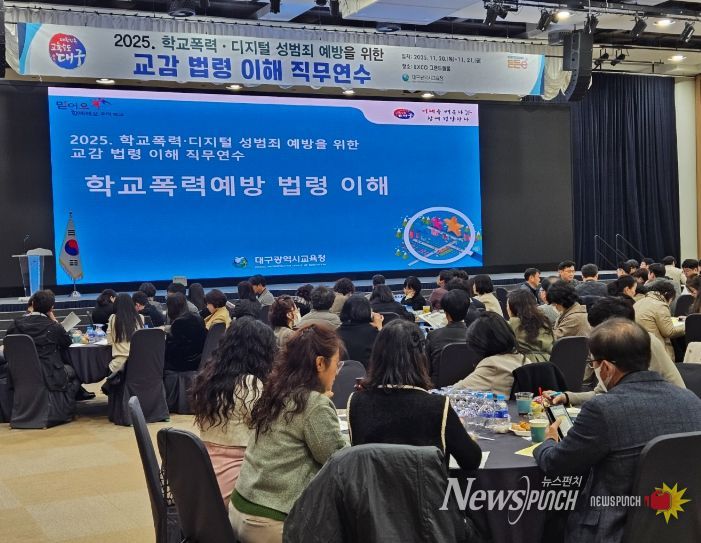 뉴스펀치 조평훈 기자 | 대구시교육청은 11월 20일과 11월 21일, 양일간 엑스코에서 초·중·고·특·각종학교 교감 430여 명을 대상으로 ‘학교폭력‧디지털 성범죄 예방을 위한 법령 이해 연수’를 운영한다.