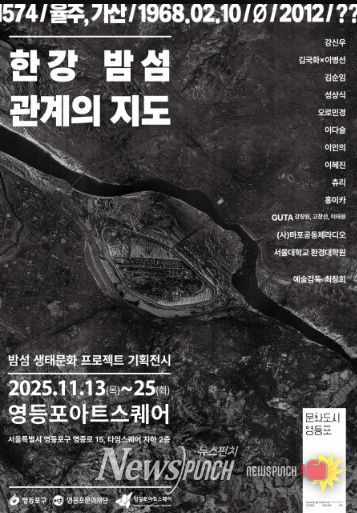 뉴스펀치 김완규 기자 | 영등포문화재단이 ‘밤섬 생태문화 프로젝트’ 기획전시 ‘한강 밤섬 / 관계의 지도’의 오프닝을 개최했다. 이번 행사는 최호권 영등포구청장을 비롯해 참여 예술가, 밤섬 부군당 보존회 주민, 지역 활동가 등 100여 명이 참석하며 성황리에 마무리됐다.