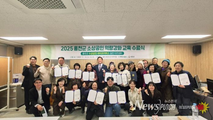 뉴스펀치 김길룡 기자 | 홍천군은 11월 19일 홍천중앙시장 2층 다목적실에서 ‘2025년 소상공인 역량 강화 교육’ 수료식을 개최했다.