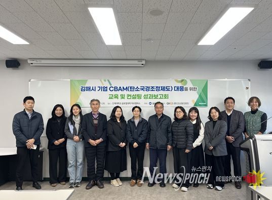 뉴스펀치 김길룡 기자 | 김해시 탄소중립지원센터는 지난 11월 20일 인제대학교 글로컬대학 허브캠퍼스에서 EU 수출기업을 대상으로 추진한 '김해시 기업 CBAM(Carbon Border Adjustment Mechanism, 탄소국경조정제도) 대응 교육 및 컨설팅' 사업의 성과보고회를 개최했다