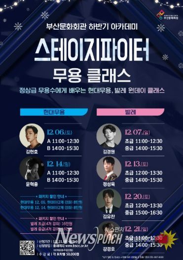 뉴스펀치 김길룡 기자 | (재)부산문화회관은 최근 다양한 문화 콘텐츠와 공연 활동을 통해 시민들의 무용에 대한 관심과 학습 수요가 꾸준히 증가하고 있는 흐름에 발맞춰, 오는 12월 무용 원데이 클래스 강좌를 마련한다.