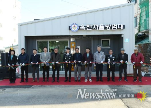 뉴스펀치 김길룡 기자 | 강릉시는 21일 금요일 오후 2시 30분 옥천동 265-4번지에 새롭게 신축한 ‘옥천 자율방범대 초소’ 준공식을 김홍규 강릉시장, 최익순 강릉시의회 의장, 이길우 강릉경찰서장, 김용래 도의원, 배용주·김홍수·홍정완 시의원, 강릉시 20개 자율방범대 대장, 옥천 자율방범대원, 지역자생단체장, 주민 등 70여 명이 참석한 가운데 진행했다.