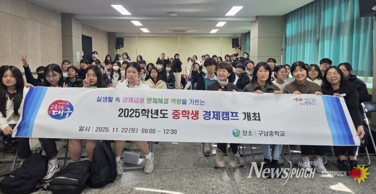 뉴스펀치 조평훈 기자 | 대구시교육청은 11월 22일 구남중학교에서 15개 팀 71명의 중학생이 참여하는 ‘2025 중학생 경제 캠프’를 운영한다고 밝혔다.
