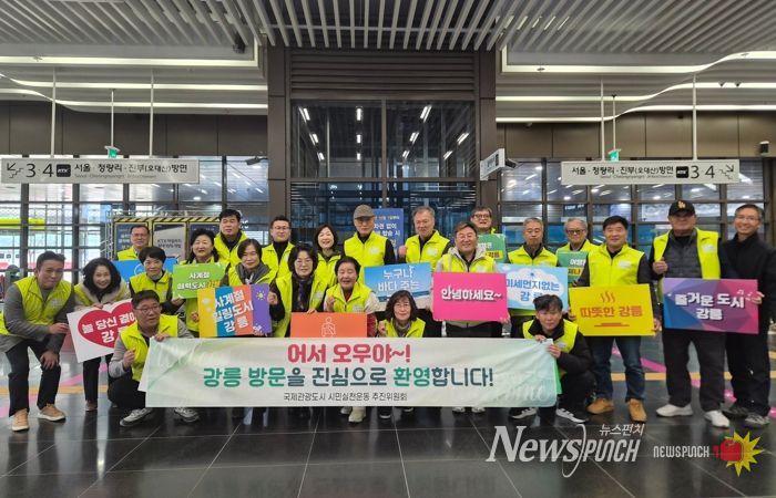 뉴스펀치 김길룡 기자 | 국제관광도시 시민실천운동 추진위원회 깨끗분과소속 30여 명은 지난 22일 강릉역에서 전국 제일의 친절한 도시 강릉 조성을 위한 관광객 환영 캠페인을 추진했다.
