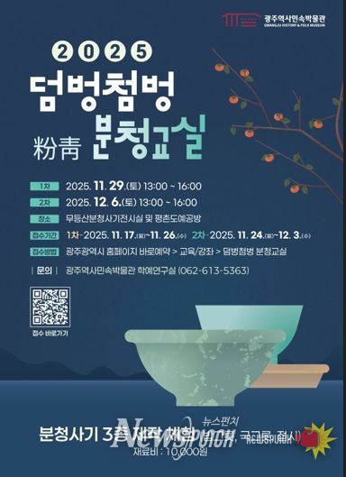 뉴스펀치 조은별 기자 | 광주광역시 역사민속박물관은 ‘2025 덤벙첨벙 분청교실’을 11월29일과 12월6일 두 차례 운영한다.