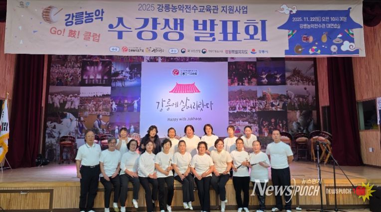 뉴스펀치 김길룡 기자 | 2025년 강릉농악전수교육관 프로그램 발표회가 지난 22일, 강릉농악전수교육관에서 시민들의 호응 속에 성공적으로 마무리됐다.