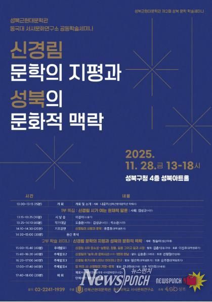 이번 학술세미나는 성북구청 주최로 진행되며, 성북근현대문학관과 동국대 서사문화연구소가 주관한다. 문의는 성북근현대문학관로 하면 된다. 신경림 시인의 문학을 통해 인간과 지역, 공동체의 관계를 성찰하고, 그의 시 세계가 담고 있는 공동체적 시선과 성북의 문화적 맥락을 함께 탐구하는 장이 될 전망이다. 이승로 성북구청장은 “성북구의 문학적 전통과 문화적 정체성을 더욱 깊이 있게 나누는 계기가 될 것으로 보인다”고 말했다.